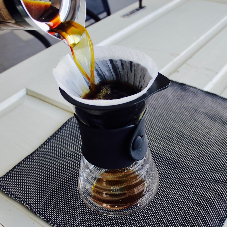 Ihr könnt nach Schritt 8 euren Cold Brew trinken. Wir mögen es aber lieber mit weniger Sediment. Die schlickartige Ablagerung gelangt doch irgendwie zu oft mit in die Tasse. Wenn Ihr das nicht mögt, gebt den Cold Brew zum weiteren Filtern durch einen Papierfilter. Hier verliert den Kaffee zwar auch einen Teil seiner Öle, schmeckt aber danach viel klarer. Das ist vor allem bei fruchtigen Kaffes, wie unserem Kenianer, wünschenswert.