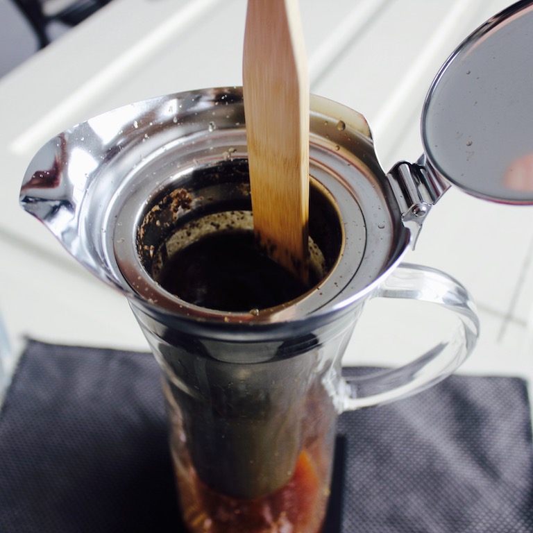 In jeder Zubereitungsart ist es wichtig, dass das ganze Kaffeemehl mit Wasser in Kontakt kommt. Rührt im gemahlenen Kaffee herum. So lassen sich trockene Klümpchen vermeiden und euer Kaffee extrahiert optimal.